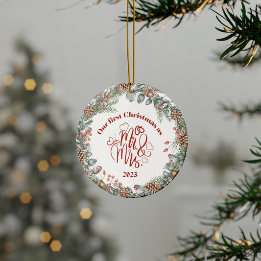 First Christmas as Mr and Mrs Ceramic Ornament | Romantic Christmas Decoration | Couple's First Christmas 2023
